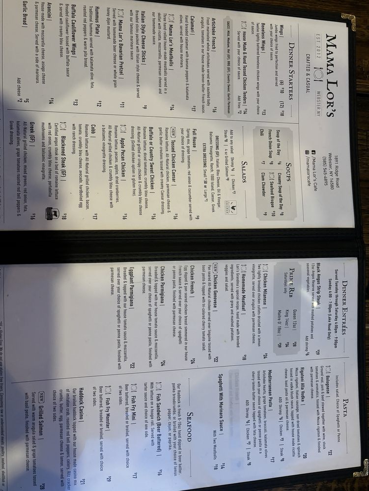 Introducing Mama Lor's Cafe, a cozy American cafe located at 1891 Ridge Rd Webster, NY. This breakfast and brunch spot offers a wide range of dishes, catering to vegetarians and meat lovers alike. The menu features delectable specials like Cinnamon Bun Pancakes, Homemade Raspberry-Strawberry Almond Bread French Toast, and the savory Pastrami Breakfast Sandwich. With options like Rise and Shine, Barn Busters, and classic breakfast sandwiches, Mama Lor's Cafe has something for everyone. The reviews highlight the friendly service, delicious food, and welcoming atmosphere. Whether you're craving a hearty breakfast or a satisfying brunch, Mama Lor's Cafe is the perfect spot for families or friends to gather and enjoy a memorable dining experience. Don't miss out on the diverse menu offerings and the warm, welcoming ambiance of Mama Lor's Cafe.
