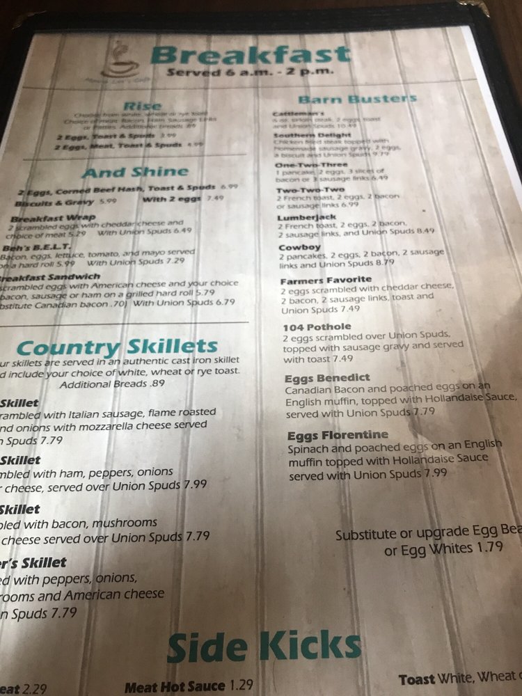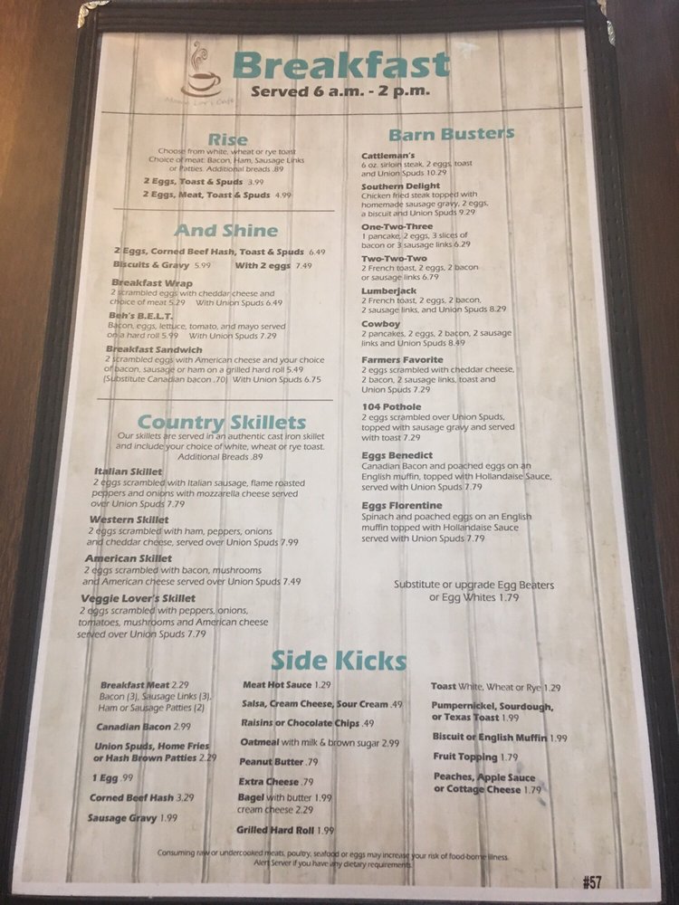Mama's Lor's favorite. Sirloin steak, 2 eggs, toast and spuds.